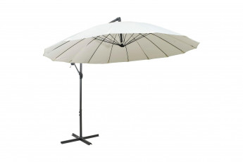 Vettähylkivä polyesteripäällinen ja lakattu FSC®-kovapuurunko. Taittomekanismi ja vetonaru. Ø300 x K260 cm.